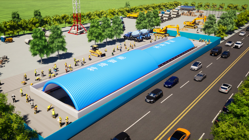 工厂预制(10-15天)+现场安装(1天),整体周期≤20天;内部无支撑,净空3-5米,便于机械调度,拆除时间≤1天。